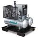 Universell einsetzbare Druckluftstation mit 2 x 100 L Druckluftbehältern fertig montiert auf einer Sicherheits-Standpalette, platzsparend und transportabel